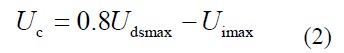 輸入電壓最大值為 Uimax ,開(kāi)關(guān)管的最大耐壓值為 U dsmax,考慮80%的降額使用系數(shù),則電容 C c兩端電壓Uc 的大小可由式(1)確定。