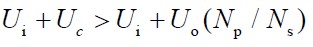 當(dāng)開(kāi)關(guān)管 Q 關(guān)閉時(shí),初級(jí)電感 Lp 中的能量將轉(zhuǎn)移到次級(jí)輸出,但漏感Ll 中的能量將不能傳遞到次級(jí),轉(zhuǎn)移到箝位電路的電容Cc ,然后這部分能量被箝位電阻 R c消耗。電容c C上的電壓在開(kāi)關(guān)管關(guān)斷的一瞬間沖上去,然后一直處于放電狀態(tài)。電容 C c的值應(yīng)取得足夠大以保證其在吸收漏感能量和釋放能量時(shí)自身兩端電壓uc( t )紋波足夠小。因此電容Cc 兩端電壓uc( t )為基本為恒定值Uc 。同時(shí)電容 Cc 上的電壓不能低于次級(jí)到初級(jí)的反射電壓Uo × (Np / Ns ),否則開(kāi)關(guān)管關(guān)斷期間,二極管導(dǎo)通,RCD 箝位電路將成為該變換器的一路負(fù)載。因此開(kāi)關(guān)管承受的尖峰電壓被箝位為: