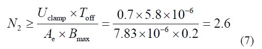 漏感存儲(chǔ)的能量完全被電阻Rc 消耗,則電阻 Rc 的大小可由式(2)確定。