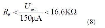 TL431 參考輸入端電壓ref U 為2.5V,電流為1.5μA,為了避免此端電流影響分壓比和避免噪聲的影響,通常取流過(guò)電阻R6 的電流為參考輸入端電流的100 倍以上,所以: