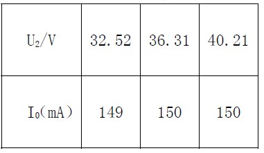 從32V~40V 時(shí)電流變化范圍是149mA~150mA 調(diào)整率為0.6%,電壓調(diào)整率Su≤1%,達(dá)到要求。