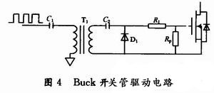 為了減小DB的反向恢復(fù)電流,進(jìn)一步減少存儲(chǔ)進(jìn)驅(qū)動(dòng)電源的電荷量,本文中的DB采用快速恢復(fù)二極管。Buck電路開關(guān)管的驅(qū)動(dòng)電路,如圖4所示。