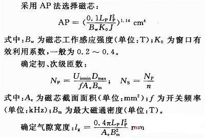 確定已知參數(shù):直流輸入電壓的最大值Uinmax和最小值Uinmax;輸出電壓Uo、功率Po;開關頻率f、工作效率η、開關導通壓降UDS。在反激變壓器中,次級反激電壓VOR與輸入電壓之和不能高于開關管的耐壓USmax,
