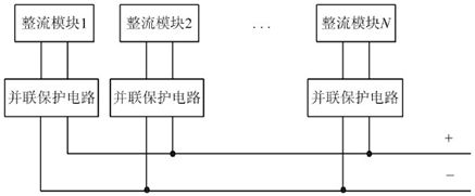 (4) 模塊并聯(lián)保護(hù)。每個(gè)模塊內(nèi)部均有并聯(lián)保護(hù)電路, 可以保證模塊發(fā)生故障時(shí)自動(dòng)退出系統(tǒng), 從而不影響其他正常模塊的工作。模塊并聯(lián)輸出示意圖如圖6所示。