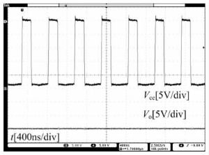 圖12 滿載時(shí)LT1935內(nèi)部功率三極管集電極電壓和輸出電壓波形示意圖