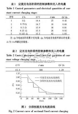 增大充電電流,電池極板上單位時間內(nèi)恢復(fù)的活性物質(zhì)增多,充電時間就可縮短,但過大的充電電流會損害電池。電池可接受的充電電流是有限的,且會隨充電時間呈指數(shù)規(guī)律下降。在電池充電過程中,充電電流曲線在該指數(shù)函數(shù)曲線以上時會導(dǎo)致電池電解液發(fā)生析氣反應(yīng)(過充電) ,反之則不能有效縮短充電時間。理想化的電池快速充電過程是充電電流始終保持在電池充電可接受電流的極限值,即充電電流曲線與該電池的充電可接受電流曲線相重合。本文選擇容易實現(xiàn)的分段恒流充電方法,其關(guān)鍵是要確定適當(dāng)?shù)碾A段恒流充電終止判斷標(biāo)準(zhǔn)、恒流充電分段數(shù)和各階段恒流充電電流值。
