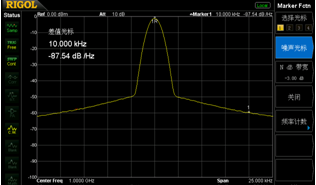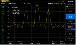 圖四:借助于100Hz RBW,清晰分辨出相鄰的2個(gè)信號(hào)