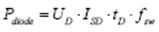 為確保兩個(gè)SR MOSFET之間的互鎖,以避免出現(xiàn)直通電流,必須實(shí)現(xiàn)一定的死區(qū)時(shí)間。因此,在開(kāi)啟一次側(cè)之前,必須關(guān)斷相應(yīng)的MOSFET。這將導(dǎo)致電流從MOSFET溝道,轉(zhuǎn)而流向MOSFET體二極管,而這又會(huì)使漏源極電壓發(fā)生負(fù)電壓降(圖1)。這段時(shí)間被稱為體二極管導(dǎo)通時(shí)間tD。利用下列參數(shù),即可算出二極管功耗:體二極管的正向壓降UD、從源極流向漏極的體二極管電流ISD、體二極管導(dǎo)通時(shí)間tD和電源轉(zhuǎn)換器開(kāi)關(guān)頻率fsw: