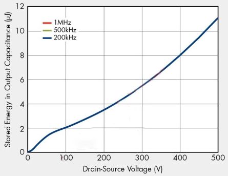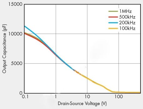 過(guò)去,許多設(shè)計(jì)人員都使用粗略假設(shè)來(lái)提供等效輸出電容值,因?yàn)檩敵鲭娙萃ǔ6贾付?5V漏源電壓。不過(guò),傳統(tǒng)的等效輸出電容值在實(shí)際應(yīng)用中卻沒(méi)有多大幫助,因?yàn)樗S漏源電壓變化,并且在開(kāi)關(guān)導(dǎo)通/關(guān)斷期間不能提供準(zhǔn)確的儲(chǔ)能信息。在功率轉(zhuǎn)換器工作電壓下,新定義的輸出電容提供等效的儲(chǔ)能,能夠?qū)崿F(xiàn)更優(yōu)化的功率轉(zhuǎn)換器設(shè)計(jì)。