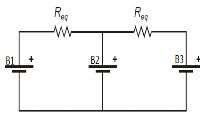 該電路可以等效成如圖3 所示電路,在每兩個電池單體之間連接一個等效電阻,可以推出如等式淵1冤給出的等效阻值。這種方法由于能量逐個傳遞,因此均衡時間較長,可以根據(jù)等式淵1冤,通過改變開關器件的開關頻率和電容容值的方法調(diào)節(jié)等效電阻,改變充放電電流。