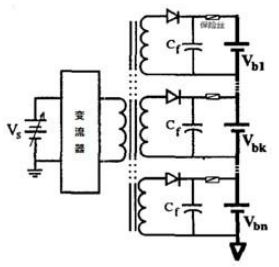 這種充電方式的多繞組變壓器設計復雜,而且價格較貴,需要根據(jù)不同的蓄電池單體數(shù)量改變繞組個數(shù),不易于蓄電池組的擴展曰僅能通過給蓄電池單體充電的方式實現(xiàn)均衡。