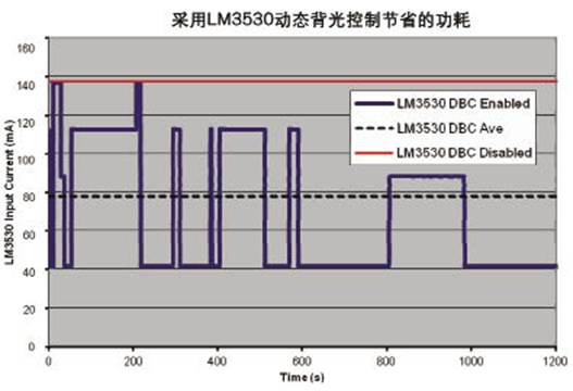 圖4 采用LM3530動態(tài)背光控制節(jié)省的功耗