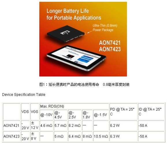 新的產(chǎn)品上應(yīng)用了AOS的AlphaMOS專(zhuān)利技術(shù)。這些技術(shù)的好處在于它可以延長(zhǎng)電池的使用壽命,還可以使設(shè)計(jì)變的更簡(jiǎn)單緊湊,適用于便攜式產(chǎn)品,例如:平板電腦、智能手機(jī),電子書(shū)、筆記本電腦、數(shù)碼相機(jī)及便攜式音樂(lè)播放器。
