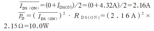 (3)若考慮到還有關(guān)斷損耗,從圖3中可查出PD=510mW=0.51W(UDS(OFF)=600V)。假定占空比為50%,在計(jì)算平均功耗時(shí)應(yīng)將關(guān)斷損耗除以2。因此PD=9.72W+0.51W/2=9.975W,該結(jié)果就與10.0W非常接近。
