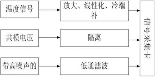 直接采集來的信號由于噪聲等原因不一定能夠滿足采集系統(tǒng)的要求,為了適合數(shù)據(jù)采集設(shè)備的輸入范圍,由傳感器生成的電信號必須經(jīng)過處理。信號調(diào)理裝置能夠按照要求放大或者縮小電壓電流范圍,并對信號進行隔離濾波等處理。光伏監(jiān)測系統(tǒng)的信號調(diào)理圖如圖3所示。