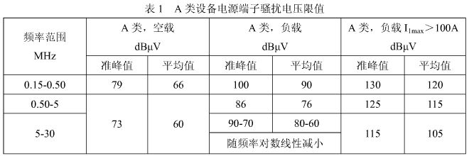 要想讓逆變焊機內部產生的電磁騷擾徹底消除是不可能的, 我們只要使焊機符合 GB15579.10 標準的要求就可以了,電源端子騷擾電壓的限值見表 1。IGBT 逆變焊機通過空載試驗一般都沒有問題,焊機負載狀態(tài)(I1max≤100A)的騷擾電壓限值見表 1 的 A類。