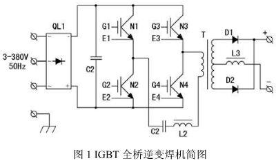 圖 1 是全橋 IGBT 逆變焊機主電路簡圖,由圖 1 可見,三相 380V電源進入焊機首先要經過三相整流橋QL1 整流和 C2 濾波,濾波電容器的等效容量一般在 50~1000µf 之間,在采用大電容器濾波的整流濾波電路中,整流二極管導通時間較短,濾波電容充電電流瞬時峰值大,電流波形為近似尖脈沖,使 50Hz 正弦電流波形發(fā)生畸變,產生諧波電流。