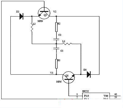 本實驗中,選用兩個小功率NPN管C1815(Q1、Q2)來替代開關管,用89C51芯片的P1.0和P1.1腳控制Q1、Q2的開關。同時,蓄電池的端電壓V1和V2由差動放大電路采集,經(jīng)A/D轉換送到CPU。在整個過程中,電壓每20ms采樣一次,每隔1s上傳上位機并保存并自動繪制曲線。圖5為試驗電路圖。