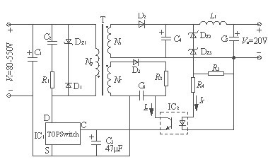 第七步確定反饋繞組的參數(shù),反饋是反激的電壓,其電壓是取自輸出級(jí)的,所以反饋電壓是穩(wěn)定的,TOP 的電源電壓是5.7到9V,繞上7匝,那么其電壓大概是6V多,這就可以了,記得,反饋電壓是反激的,其匝數(shù)比要和幅邊對(duì)應(yīng),懂什么意思嗎,至于線,因?yàn)榱鬟^(guò)其的電流很小,所以就用繞原邊的線繞就可以了,無(wú)嚴(yán)格的要求.