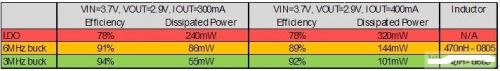 雖然選擇一個(gè)降壓轉(zhuǎn)換器來取代LDO似乎意義不大,但考慮到降壓轉(zhuǎn)換器必須能在極高占空比下工作,這就變得十分重要了。如果降壓轉(zhuǎn)換器的輸出設(shè)定為2.9V,電池電壓低到3.3V,降壓轉(zhuǎn)換器在88%的占空比下工作。在某些負(fù)載和輸入電壓條件下,降壓轉(zhuǎn)換器甚至?xí)黄韧V归_關(guān),并在100%占空比下工作。若手機(jī)開始發(fā)射GSM脈沖,在低電池電壓(VVBAT)情況下,這種情形會(huì)變得更加嚴(yán)重。GSM脈沖可能高至2A,而且在這些脈沖期間,鋰離子電池的輸出阻抗會(huì)使電池電壓下降400mV。對(duì)LDO而言,