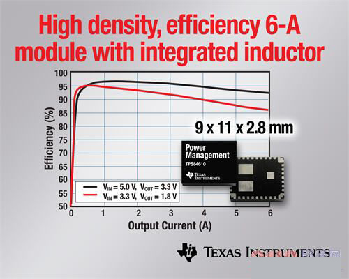TPS84610 支持 2.95 V 至 6 V 的輸入電壓,可生成 0.8 V 低輸出,而且開關(guān)頻率可在 500 kHz 至 2 MHz 之間調(diào)節(jié)。9 毫米 x 11 毫米 x 2.8 毫米的低噪聲模塊符合 EN55022 Class B 電磁輻射標(biāo)準(zhǔn),支持寬帶通信設(shè)備等噪聲敏感型應(yīng)用。
