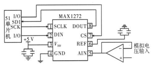 圖4 中MAX1272 采用了內部參考電壓,6 腳VREF 和地之間接2. 2 μF 鉭電容和0. 1 μF 陶瓷電容。