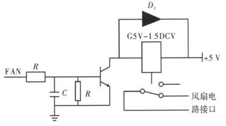 電路如圖6 所示,FAN 為低電平時,晶體管9014 不導通,此時繼電器無動作; 當FAN 為高電平時,晶體管9014 導通,使得繼電器觸點吸合,風扇在24 V 電源電壓的供電下開始工作。