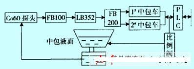 在液位控制儀中轉(zhuǎn)換成標(biāo)準(zhǔn)信號(hào)后送到plc和上位機(jī)的過(guò)程中,考慮到意外情況下不能關(guān)閉中包塞棒,增加了一套信號(hào)傳輸通道fb200,一旦一路發(fā)生中斷,可在不到3s的時(shí)間內(nèi)投運(yùn)另一路。plc和上位機(jī)在完成監(jiān)控功能的同時(shí)輸出信號(hào)到液壓比例閥,在plc輸出信號(hào)一定的前提下,重點(diǎn)研究了比例調(diào)節(jié)閥內(nèi)放大旋鈕的配合,掌握了放大和振幅之間的線性關(guān)系,可實(shí)現(xiàn)中包塞棒液壓缸的振幅調(diào)節(jié),進(jìn)而實(shí)現(xiàn)結(jié)晶器液面的調(diào)節(jié),達(dá)到液面檢測(cè)和調(diào)節(jié)的閉環(huán)控制,最終實(shí)現(xiàn)整個(gè)l1級(jí)的閉環(huán)控制,如圖2所示。