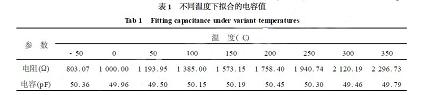 擬合參數(shù)最大時為5.037×10-8,最大相對誤差為0.78%。當(dāng)溫度變化時,金屬鉑電阻值發(fā)生變化,在不同的溫度下擬合的電容值和溫度的關(guān)系如表1所示(加入1%的白噪聲)。