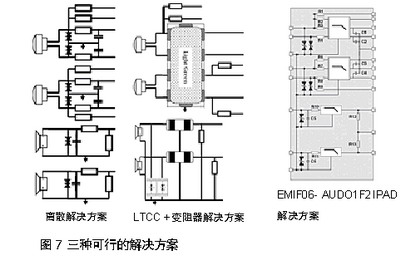 這種解決方案采用24個(gè)分立部件,組成ESD抑制器和EMI濾波器。此方案不是最優(yōu)化。它工作的費(fèi)用和可靠性受24個(gè)分立部件制約。