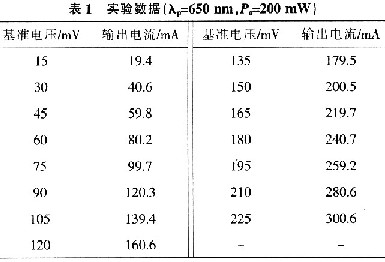 圖5結(jié)果表明基準(zhǔn)電壓與輸出電流成正比例關(guān)系,通過調(diào)節(jié)基準(zhǔn)電壓,可以改變LD的輸出功率,即LD輸出功率連續(xù)可調(diào)。