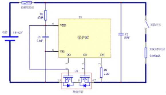 圖1 單節(jié)鋰電池保護(hù)板電路圖