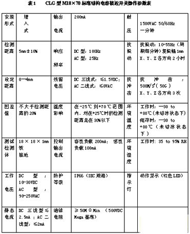 電容式接近開關(guān)屬于一種具有開關(guān)量輸出的位置傳感器,它的測量頭通常構(gòu)成電容器的一個極板,而另一個極板是物體的本身,當(dāng)物體移向接近開關(guān)時,物體和接近開關(guān)的介電常數(shù)ε發(fā)生變化,使得和測量頭相連的電路狀態(tài)也隨之發(fā)生變化,由此便可控制開關(guān)的接通和關(guān)斷。被這種接近開關(guān)的檢測物體,并不限于金屬導(dǎo)體,也可以是絕緣的液體或粉狀物體,在檢測較低介電常數(shù)ε的物體時,可以順時針調(diào)節(jié)多圈電位器(位于開關(guān)后部)來增加感應(yīng)靈敏度,一般調(diào)節(jié)電位器使電容式的接近開關(guān)在0.7-0.8Sn(Sn為電容式接近開關(guān)的標(biāo)準(zhǔn)檢測距離)的位置動作。這里選用的是浙江省洞頭縣光電開關(guān)廠生產(chǎn)的CLG型M18×70標(biāo)準(zhǔn)結(jié)構(gòu)的開關(guān)。它的外型圖與尺寸標(biāo)示圖分別如圖1與圖2所示。