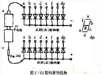 (1)檢測時若發(fā)光暗淡,說明器件已老化,發(fā)光效率太低。如果顯示的筆段殘缺不全,說明數(shù)碼管已局部損壞。