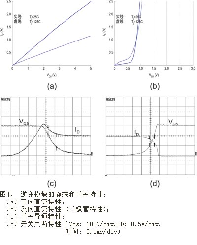 對(duì)于小型電機(jī)驅(qū)動(dòng)系統(tǒng),MOSFET在功耗、成本和性能方面較其它功率開(kāi)關(guān)管更具優(yōu)勢(shì)。MOSFET的正向特征電阻為歐姆級(jí) (見(jiàn)圖1(a)) ;其導(dǎo)通損耗與漏極電流的平方成正比,當(dāng)漏極電流低于1A時(shí),其導(dǎo)通損耗低于額定功率相同的IGBT的導(dǎo)通損耗,這是因?yàn)镮GBT在通態(tài)時(shí)存在閾值電壓,該電壓隨逆變輸出功率的下降而顯著增加。大多數(shù)空調(diào)使用的風(fēng)扇電機(jī)功率在50W以下;在這個(gè)功率級(jí)別上,基于MOSFET的逆變器的效率高于IGBT。