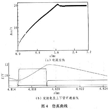圖3中,R1,R2為電壓測量電阻,Rc為電流測量電阻。調(diào)節(jié)R1可以設(shè)定最大輸出電壓。Rc限制最大輸出電流。當(dāng)最大電壓或電流其中一個達(dá)到給定值,則脈沖寬度最大。這樣可以保證負(fù)載正常工作。
