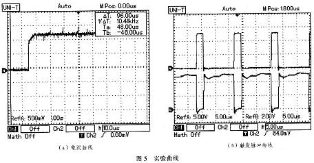 實(shí)驗(yàn)曲線如圖5所示,實(shí)驗(yàn)數(shù)據(jù)為輸入電壓12 V,輸出電壓2 V左右,測量電阻0.0025 Ω,最大輸出電流20 A。