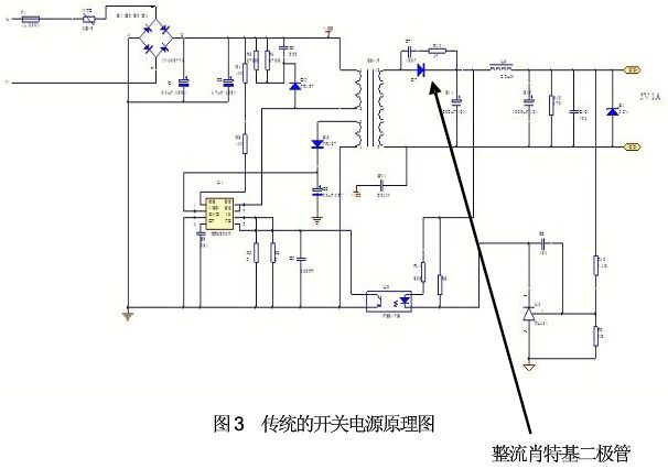 首先,從供電電源來看,如圖3是一個(gè)傳統(tǒng)的開關(guān)電源原理圖,如果要將5V降為4V,整流肖特基正向壓降所占輸出電壓比重必然增加,開關(guān)電源輸出電壓越低,因整流肖特基正向電壓比重越高(其比重X=V壓降/V輸出,輸出從5V降為4V,加入其壓降為0.5V,則其比重將從0.1上升為0.125,提高25%),電源輸出效率就越低,這對(duì)于LED屏幕整體節(jié)能效果并不明顯,所以采用這一電源設(shè)計(jì)原理顯然是是無法實(shí)現(xiàn)電源工作效率的提升。同時(shí),5V是標(biāo)稱值電壓,在市場(chǎng)運(yùn)用上已經(jīng)相當(dāng)成熟,啟用新的開關(guān)電源電源電壓,降低效率的同時(shí)只會(huì)增加成本,品質(zhì)也難保障,實(shí)現(xiàn)有困難。
