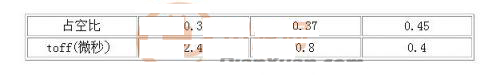 該電路具有以下優(yōu)點(diǎn):①電路結(jié)構(gòu)簡(jiǎn)單可靠,實(shí)現(xiàn)了隔離驅(qū)動(dòng)。②只需單電源即可提供導(dǎo)通時(shí)正、關(guān)斷時(shí)負(fù)壓。③占空比固定時(shí),通過合理的參數(shù)設(shè)計(jì),此驅(qū)動(dòng)電路也具有較快的開關(guān)速度。該電路存在的缺點(diǎn):一是由于隔離變壓器副邊需要一個(gè)假負(fù)載防震蕩,故該電路損耗較大;二是當(dāng)占空比變化時(shí)關(guān)斷速度變化加大。脈寬較窄時(shí),由于是貯存的能量減少導(dǎo)致MOSFET柵極的關(guān)斷速度變慢。表1為不同占空比時(shí)關(guān)斷時(shí)間toff(驅(qū)動(dòng)電壓從10伏下降到0伏的時(shí)間)內(nèi)變化情況。