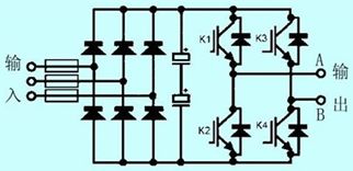 以目前最常見的單元級(jí)聯(lián)式高壓變頻器為例,對(duì)其中一個(gè)功率單元為例進(jìn)行熱設(shè)計(jì)。功率器件采用igbt,其電路如圖1所示。