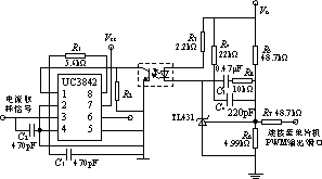 UC3842為電流型脈寬調制器,具有管腳數(shù)量少、外圍電路簡單、安裝與調試簡便、性能優(yōu)良、價格低廉等特點,特別適合用于低成本的小功率反激電路。由于該應用電路已極為成熟,此處就不詳加敘述。