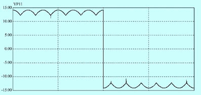 對虛擬整流波形進行斬波控制,便可以得到占空比可任意調節(jié)的PWM波形。如圖7所示,是通過SPWM控制得到的輸出波形圖??梢钥闯鏊陌j就是虛擬整流得到的波形。