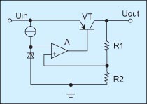 取樣電壓加在比較器A的同相輸入端,與加在反相輸入端的基準電壓Uref相比較,兩者的差值經放大器A放大后,控制串聯調整管的壓降,從而穩(wěn)定輸出電壓。當輸出電壓Uout降低時,基準電壓與取樣電壓的差值增加,比較放大器輸出的驅動電流增加,串聯調整管壓降減小,從而使輸出電壓升高。相反,若輸出電壓Uout超過所需要的設定值,比較放大器輸出的前驅動電流減小,從而使輸出電壓降低。供電過程中,輸出電壓校正連續(xù)進行,調整時間只受比較放大器和輸出晶體管回路反應速度的限制。