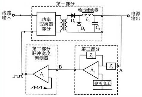如圖l所示為開關電源控制方框示意圖,開關電源控制環(huán)路由以下3部分構成。