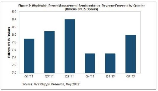 據(jù)IHS iSuppli公司的電源管理市場追蹤報(bào)告,繼2011年第四季度慘跌之后,電源管理半導(dǎo)體在2012年初有所回升,并在第二季度終于走上明顯增長之路,主要是受消費(fèi)與工業(yè)領(lǐng)域的擴(kuò)張推動(dòng)。