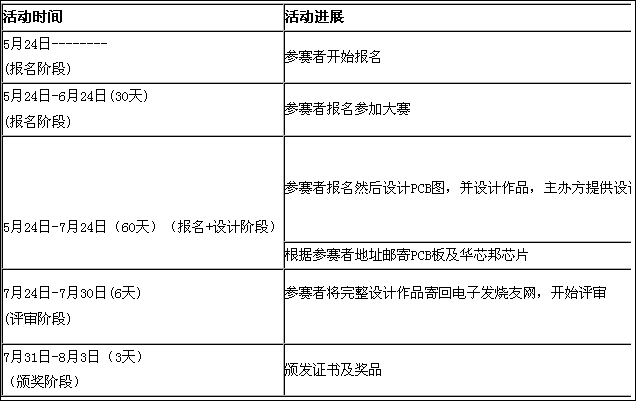 2、確認(rèn)參賽者信息并發(fā)放華芯邦芯片數(shù)據(jù)、設(shè)計(jì)資料?! ?br />