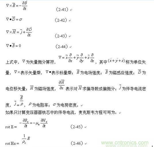 沿鐵芯片截面的磁場分布,可以用麥克斯韋的方程式來求得;麥克斯韋的微分方程式為: