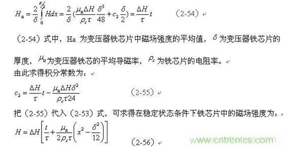 由于在變壓器鐵芯片內(nèi),截面磁場強度的平均值Ha,在任一時間內(nèi)都必須等于電磁感應(yīng)所要求的值,即滿足(2-40)式的要求,因此對應(yīng)圖2-19對(2-53)式求平均值得: