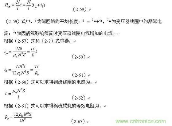 (2-65)式中,?H為變壓器鐵芯片中磁場強度增量,d為圓柱體鐵芯的直徑,