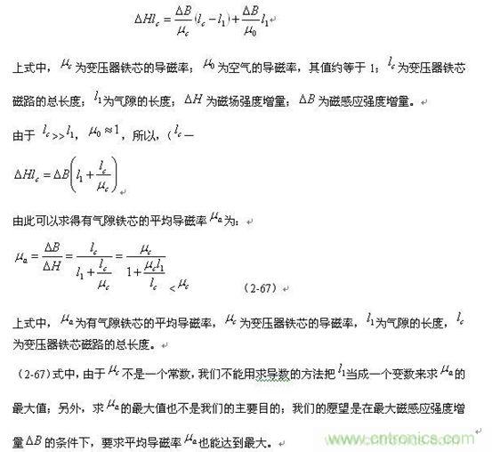 這里特別指出:(2-68)式給出的結(jié)果,是在初步滿足磁感應(yīng)強度增量要求的條件下,求有氣隙鐵芯的平均導(dǎo)磁率
